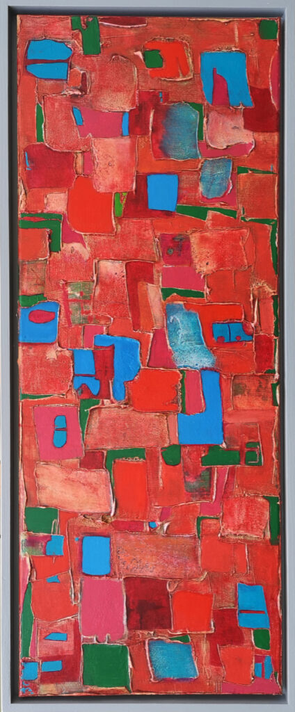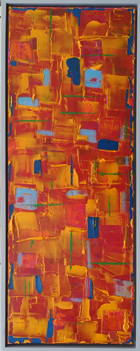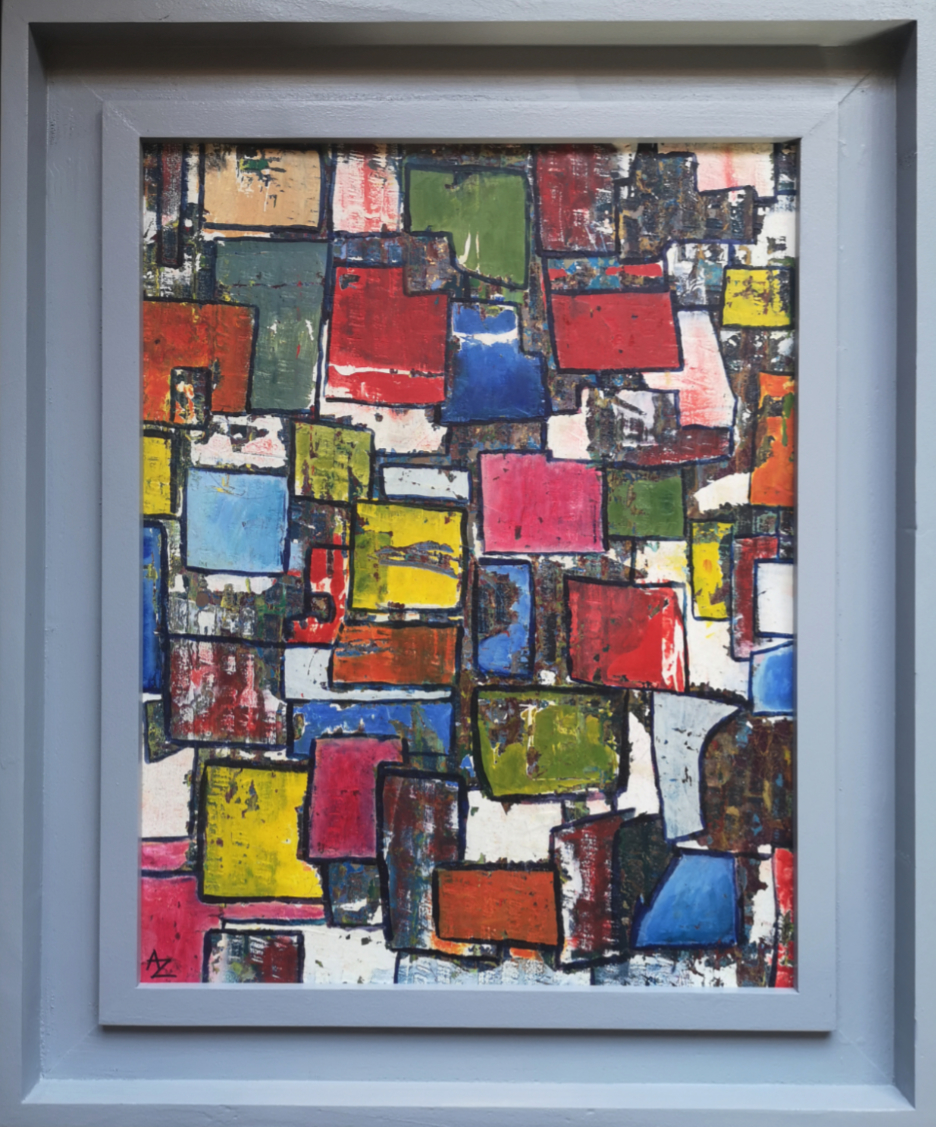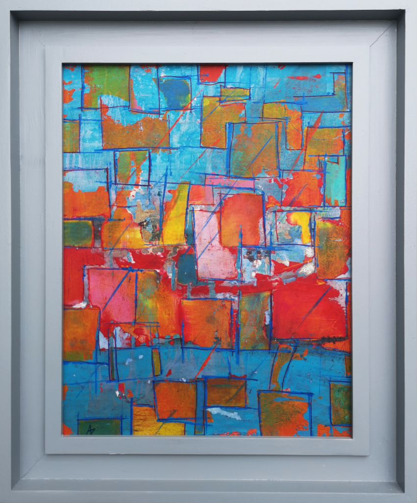 Ally deliberately goes against established conventions of painting – sometimes using mediums that compromise each other in layers that, when distressed and manipulated, produce unexpected and pleasing results. Her current series explores abstract themes in strong colours, patterns and textures, frequently working over an initial layer of magazine or newsprint.